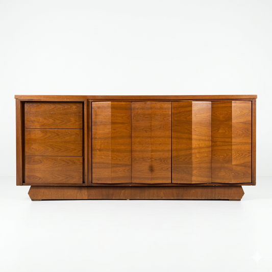 Sculptural Atomic Style Vintage Mid Century Modern 6 Drawer Lowboy Dresser c. 1960s
