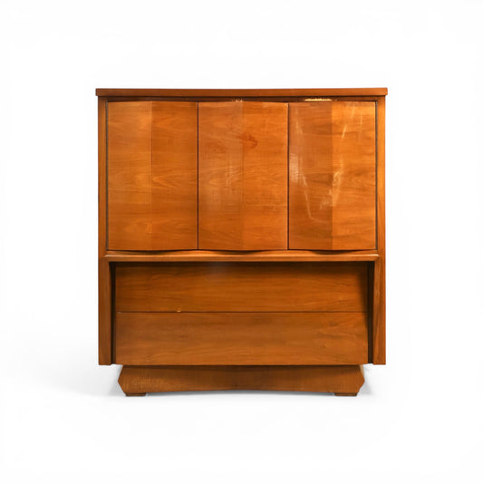 Sculptural Atomic Style Vintage Mid Century Modern 5 Drawer Highboy Dresser c. 1960s
