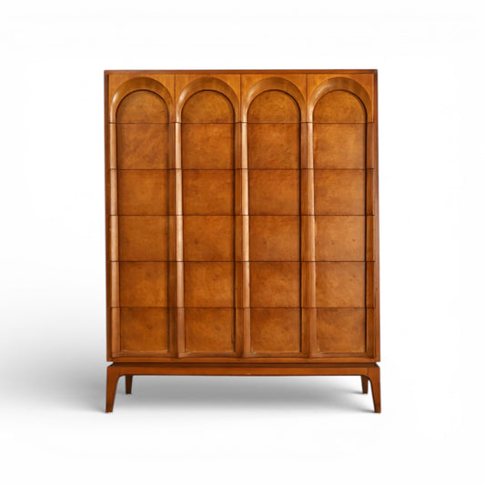 Thomasville Vintage Burlwood Mid Century Modern Sculptural Highboy Dresser c. 1960s