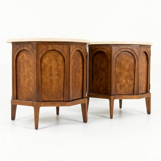 Thomasville Vintage Burlwood Mid Century Modern Sculptural Pain of Nightstands c. 1960s