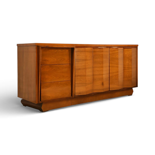 Thomasville Vintage Burlwood Mid Century Modern Sculptural 9 Drawer Lowboy Dresser c. 1960s