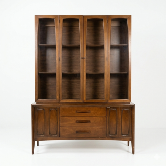 Broyhill Saga Vintage Mid Century Modern Two Piece Buffet and Hutch China Cabinet c. 1960s