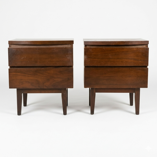 Mid Century Modern Vintage Walnut Pair of Nightstands c. 1960s
