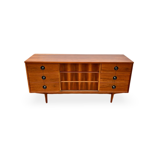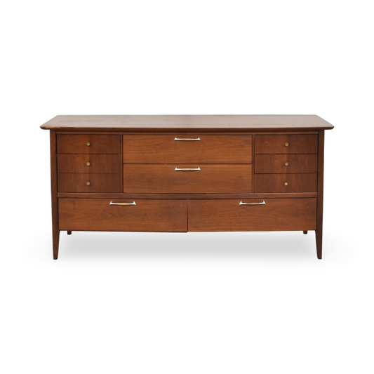 Stanley Vintage Mid Century Modern 9 Drawer Lowboy Walnut Dresser c. 1960s