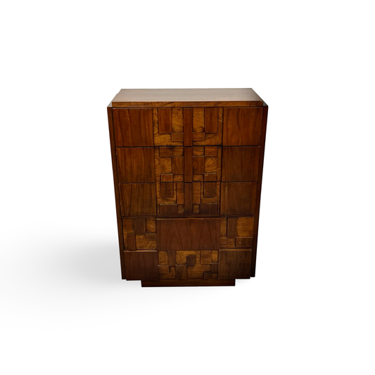 Lane Staccato Vintage Mid Century Modern Brutalist 5 Drawer Highboy Dresser c. 1970s