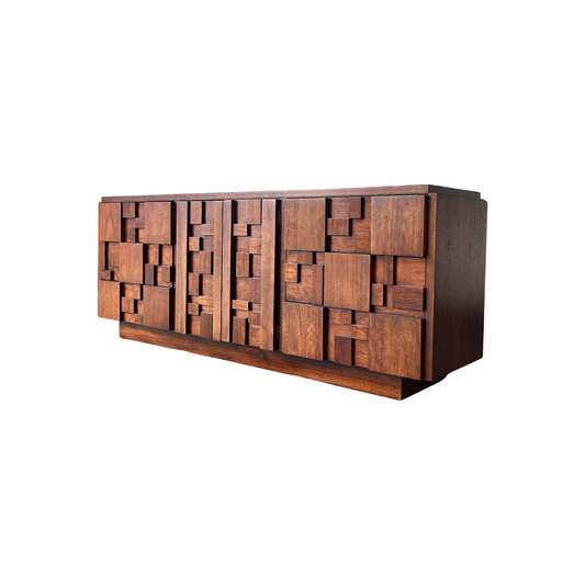 Lane Staccato Mid Century Modern Brutalist 9 Drawer Lowboy Dresser c. 1970s