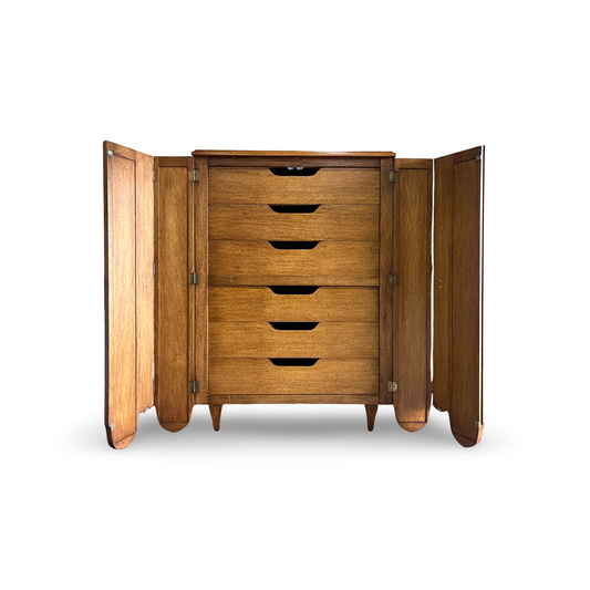 Unagusta Vintage Mid Century Modern Sculpted Highboy Dresser c. 1960s