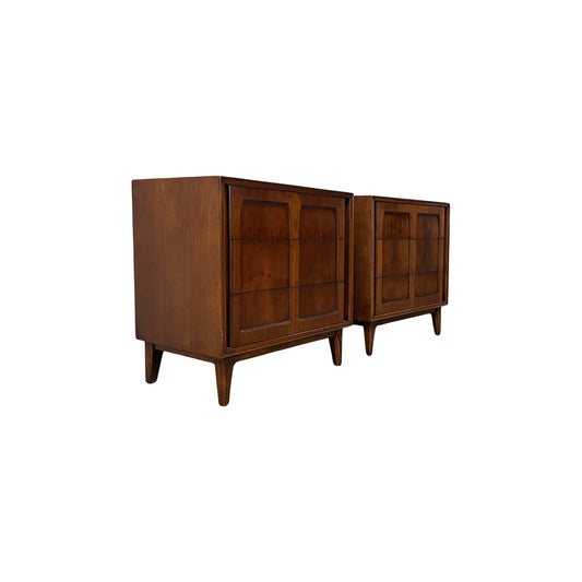 Red Lion Vintage Mid Century Modern Walnut & Burl Pair of Nightstands c. 1960s