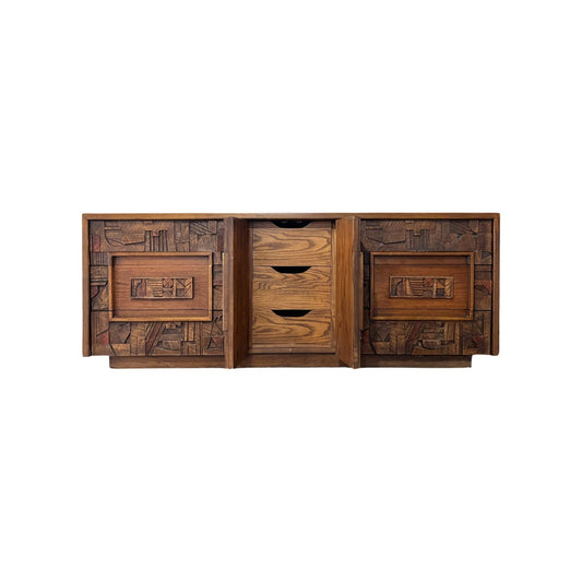 Lane Pueblo Vintage Brutalist Mid Century Modern Lowboy Dresser c. 1970s
