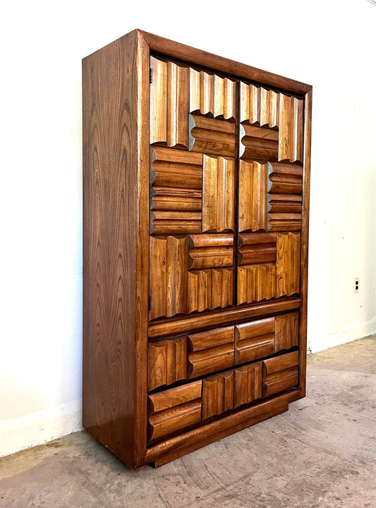 Lane Furniture Mid Century Modern Brutalist Armoire Vintage Tall Dresser