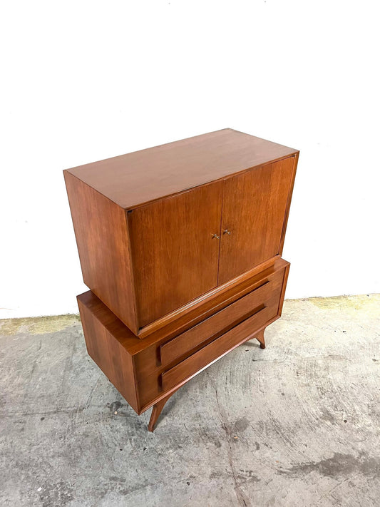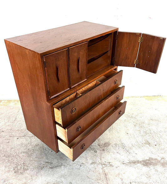 Vintage 1960s Mid Century Modern Sculpted Highboy Gentlemen’s Dresser