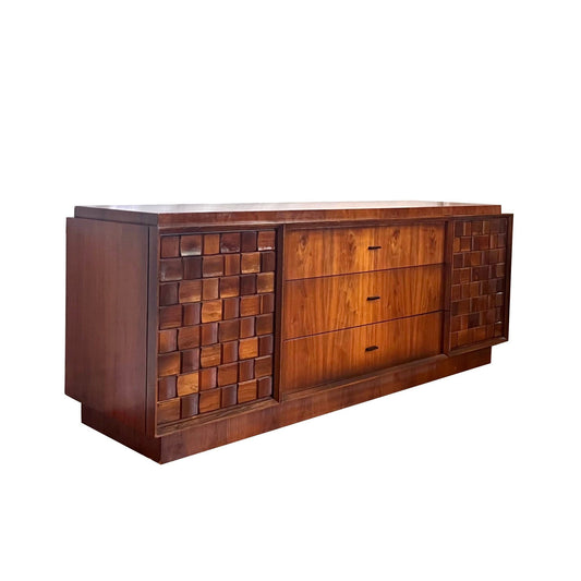 Paul Evans Style Tabago Brutalist Mid Century Modern Vintage 9 Drawer Lowboy Dresser c. 1960s