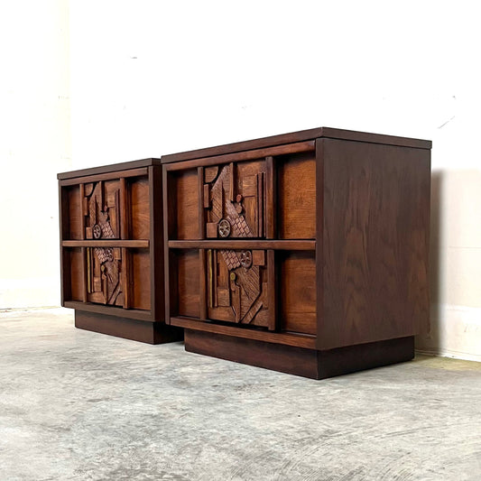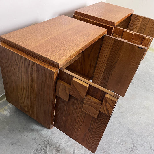 Lane Staccato Oak Mid Century Modern Brutalist Pair of Nightstands Circa 1970s