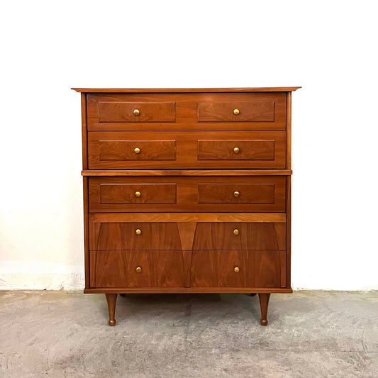Vintage Mid Century Modern Tallboy 5 Drawer Tall Dresser c. 1960s