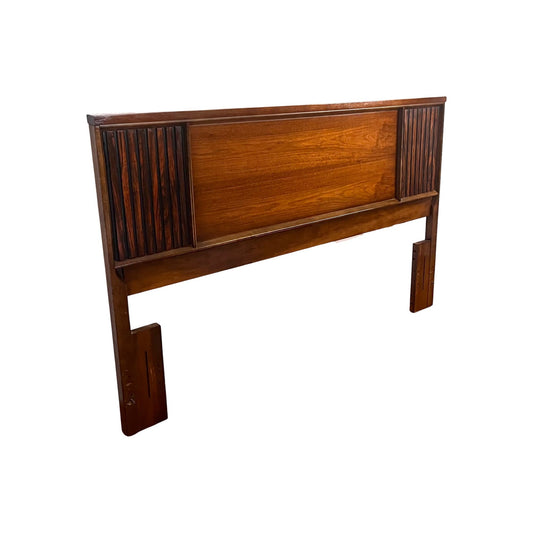 Bassett Furniture Mid Century Modern Brutalist Full / Queen Size Walnut & Rosewood Headboard c. 1960s