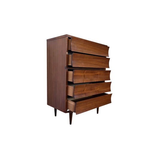 Johnson Carper “Brentwood” Mid Century Modern 5 Drawer Highboy Tall Dresser c. 1960s