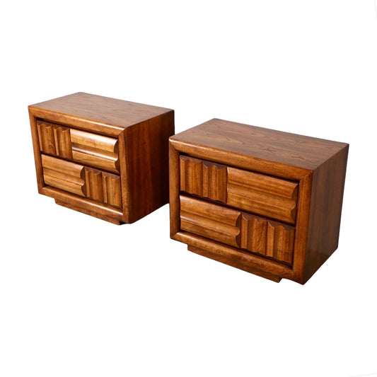 Lane Brutalist Pair of Mid Century Modern Vintage Nightstands c. 1970s