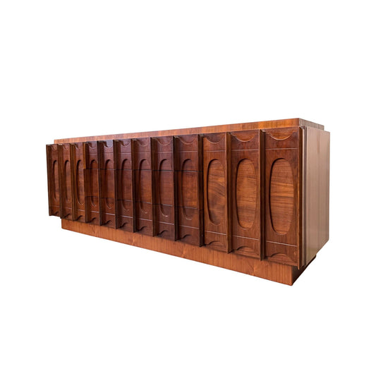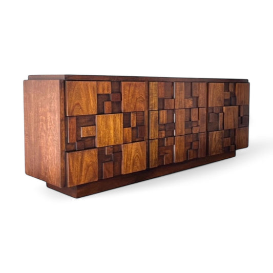 Lane Staccato Vintage Mid Century Modern Brutalist Lowboy 9 Drawer Dresser c. 1970s