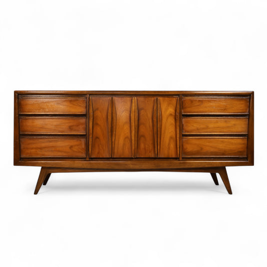 United Furniture Vintage Mid Century Modern Atomic 9 Drawer Lowboy Dresser c. 1960s