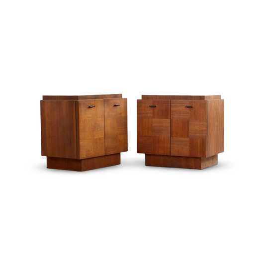 Tobago Furniture Vintage Mid Century Modern Brutalist Patchwork Pair of Nightstands c. 1970s