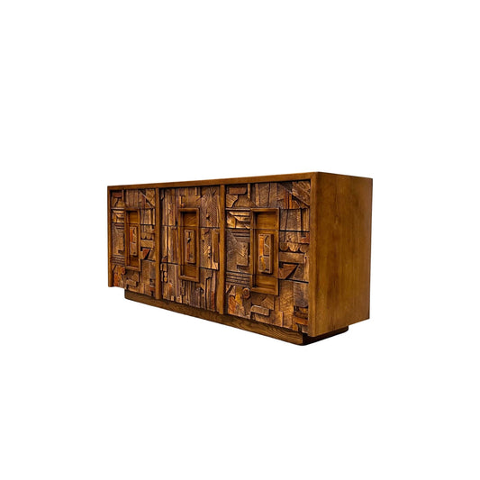 Lane Pueblo Brutalist Mid Century Modern Vintage Lowboy Dresser Credenza c. 1970s