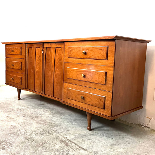 Bassett Mayan Mid Century Modern Vintage Long Lowboy Dresser c. 1960s