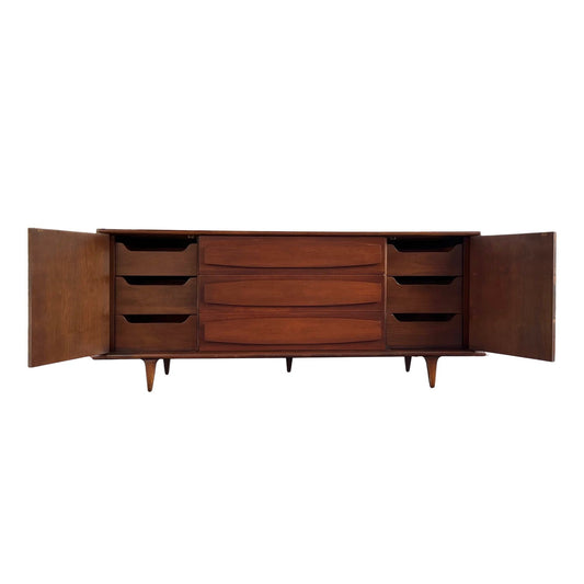Vintage Concave Mid Century Modern Longboy 9 Drawer Dresser c. 1960s