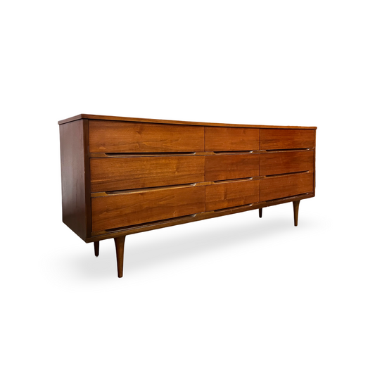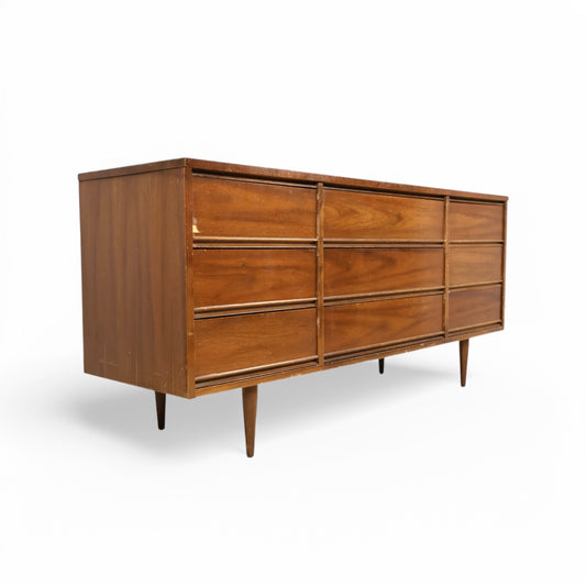 Vintage Mid Century Modern 9 Drawer Lowboy Walnut Dresser c. 1960s