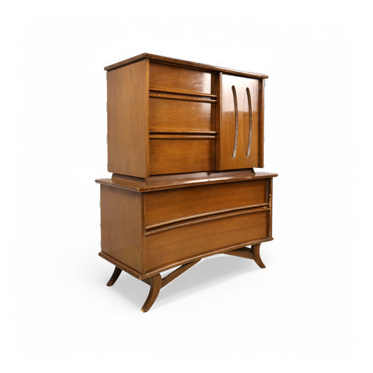 United Furniture Tiki Vintage Mid Century Modern Highboy Dresser c. 1960s