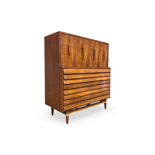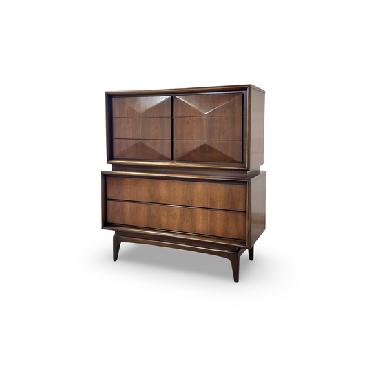 United Furniture Diamond Front Vintage Mid Century Modern Highboy Dresser c. 1960s