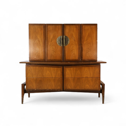 United Furniture Vintage Mid Century Modern Curved Highboy Dresser c. 1960s