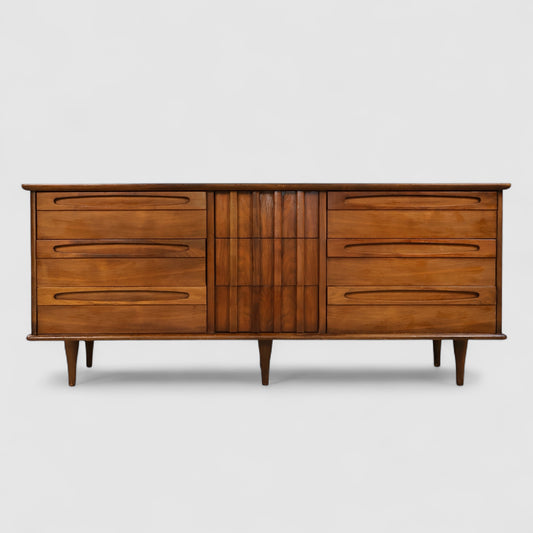 Sculpted Vintage Mid Century Modern 9 Drawer Lowboy Dresser c. 1960s