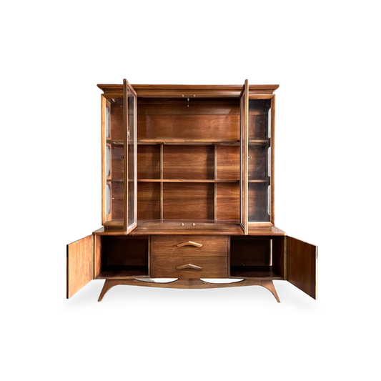 Young Manufacturing Mid Century Modern Sculpted 2 Piece China Cabinet Hutch c. 1960s