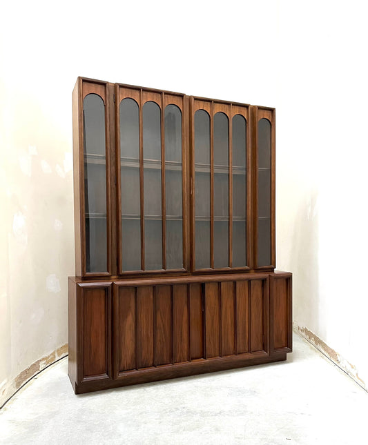 Kent Coffey Perspecta Vintage Mid Century Modern 2 Piece China Cabinet & Hutch c. 1960s