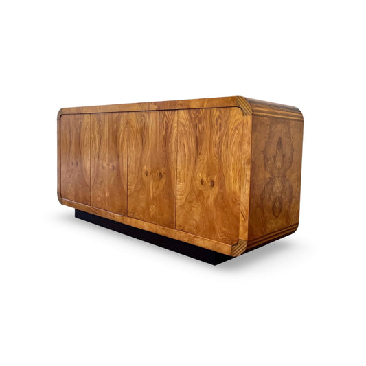 Henredon Scene 2 Vintage Mid Century Modern Olive Burl and Macassar Credenza Buffet c. 1970s
