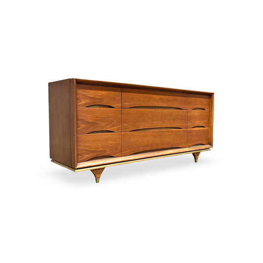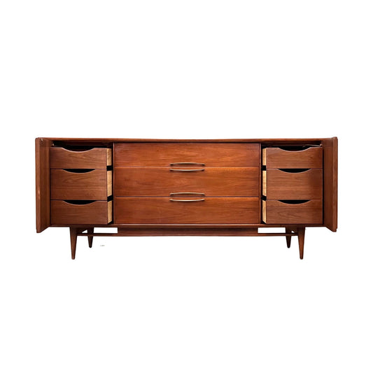 Kent Coffey Elegante Vintage Mid Century Modern 9 Drawer Lowboy Dresser c. 1960s