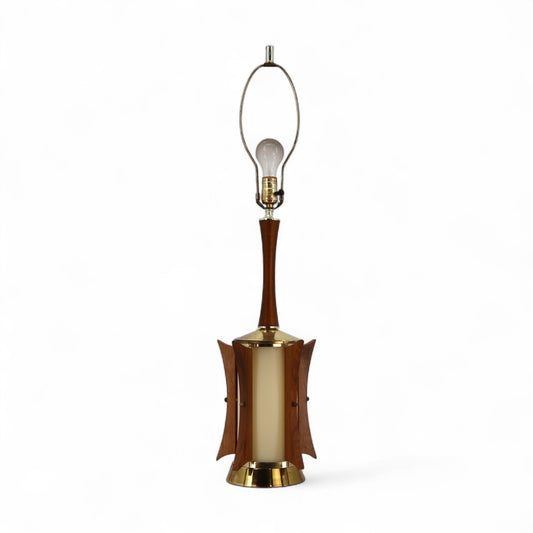 Atomic Style Vintage Mid Century Modern Brass and Walnut Fins Table Lamp c. 1960s