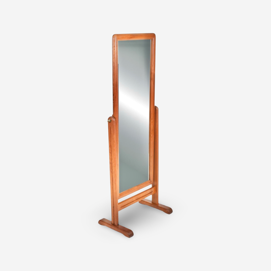 Danish Modern Vintage Teak Mid Century Cheval Standing Tilt Mirror