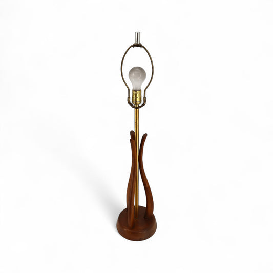Sculptural Vintage Mid Century Modern Bohemian Blooming Flower Walnut and Brass Table Lamp c. 1960s