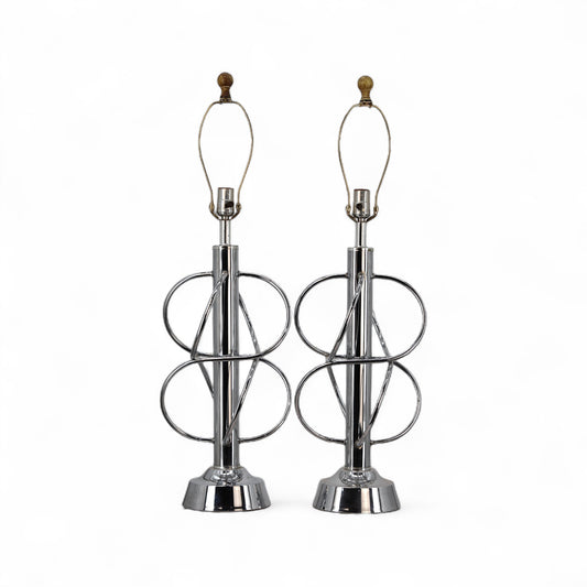 Intersecting Vintage Mid Centuey Modern Atomic Pair of Chrome Table Lamps