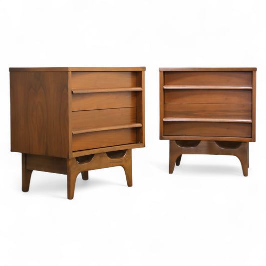 Young Manufacturing Vintage Mid Century Modern Concave Top Pair of Sculpted Nightstands c. 1960s
