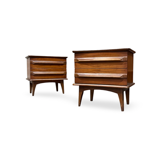 United Furniture Pair of Vintage Mid Century Modern Concave Top Nightstands c. 1960s