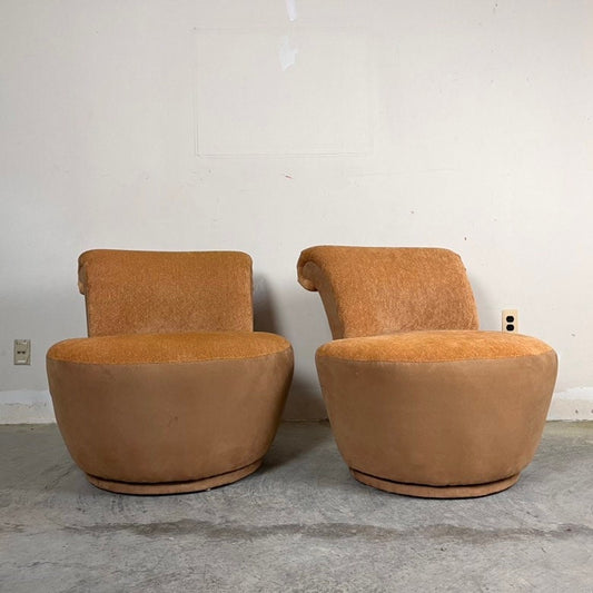Vladimir Kagan for Weiman pair of Mid Century Modern swivel lounge chairs c. 1980s