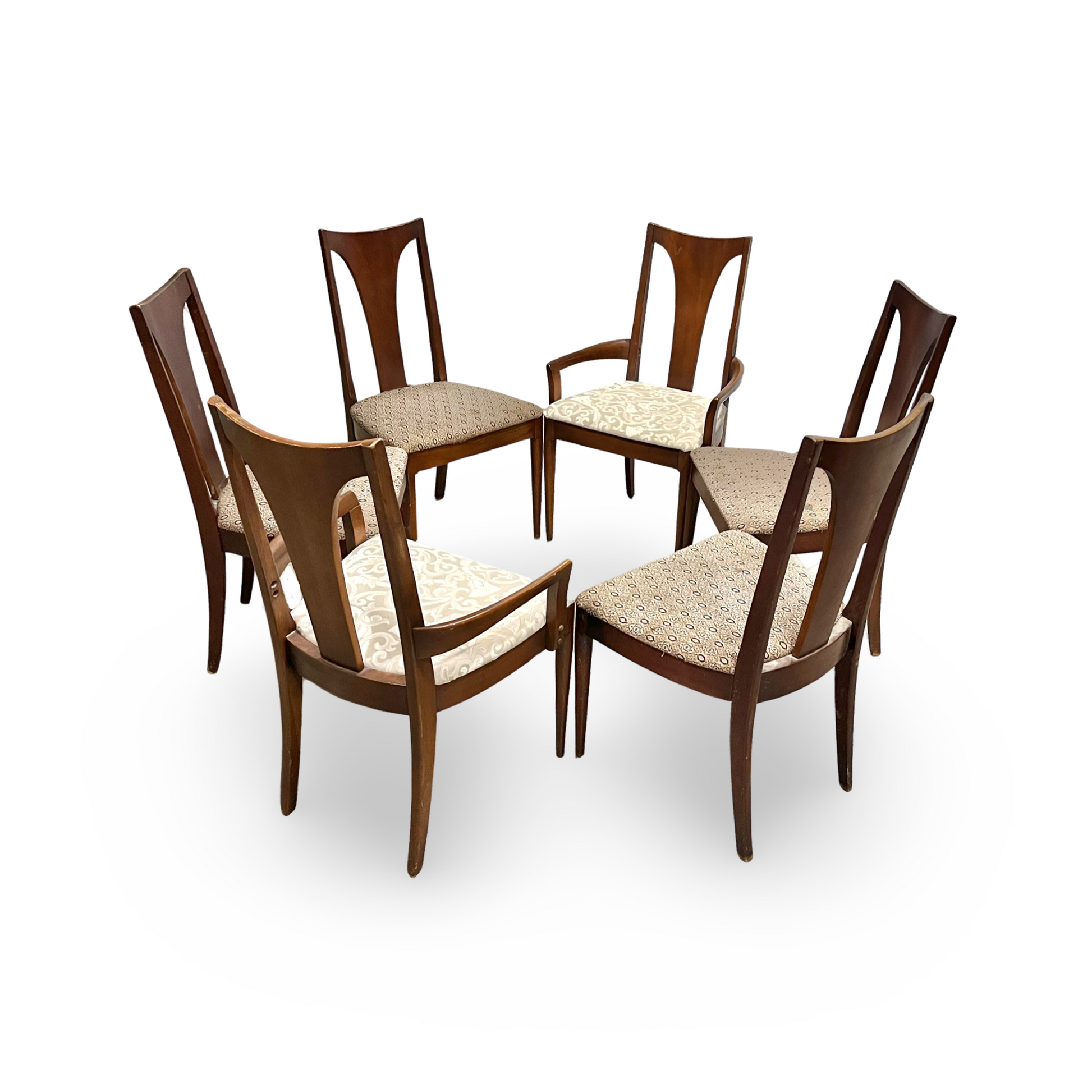 Broyhill Brasilia Vintage Mid Century Modern Set of 6 T-Back Dining Chairs c. 1960s