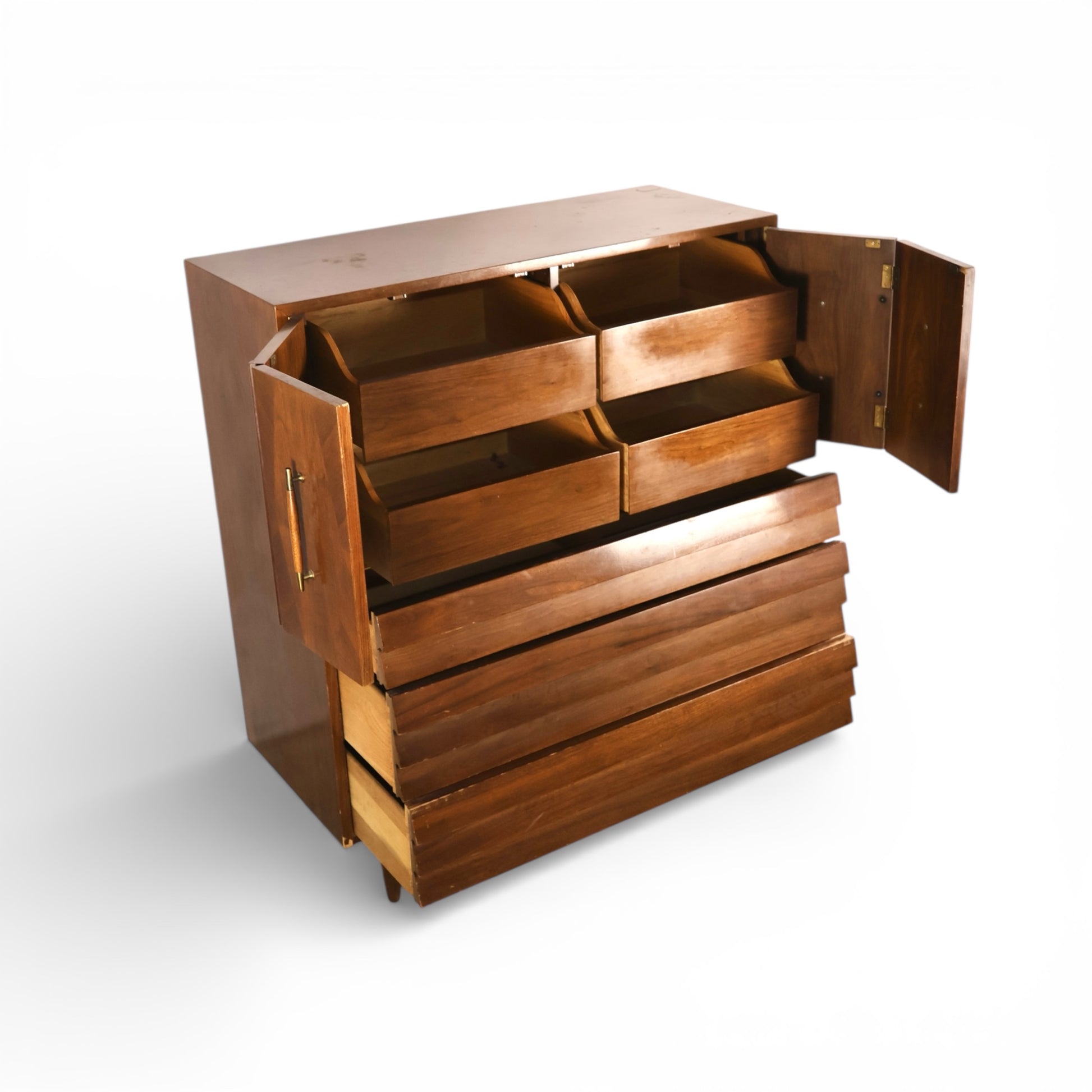 American of Martinsville Dania Collection Vintage Mid Century Modern Highboy Dresser with Doors c. 1960s