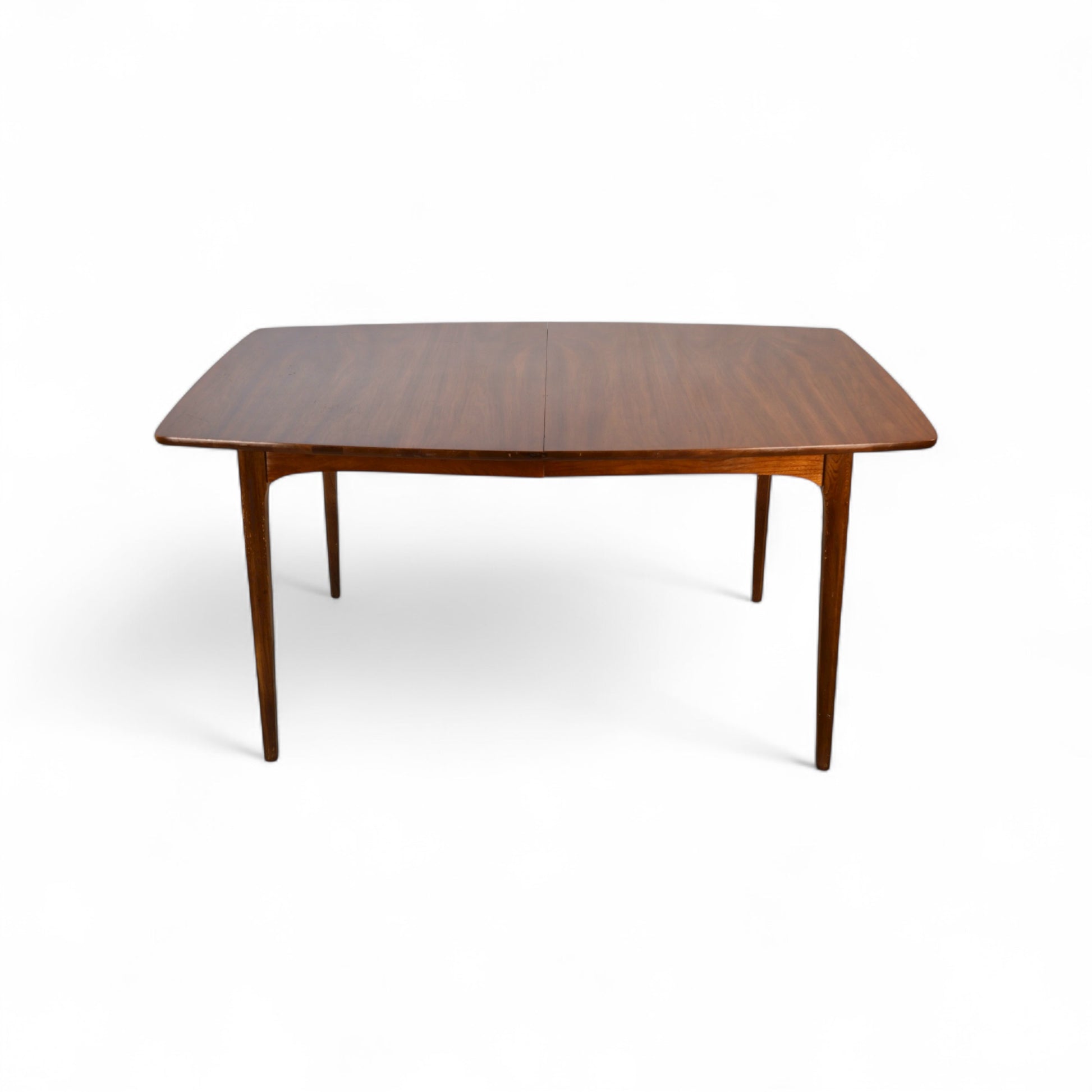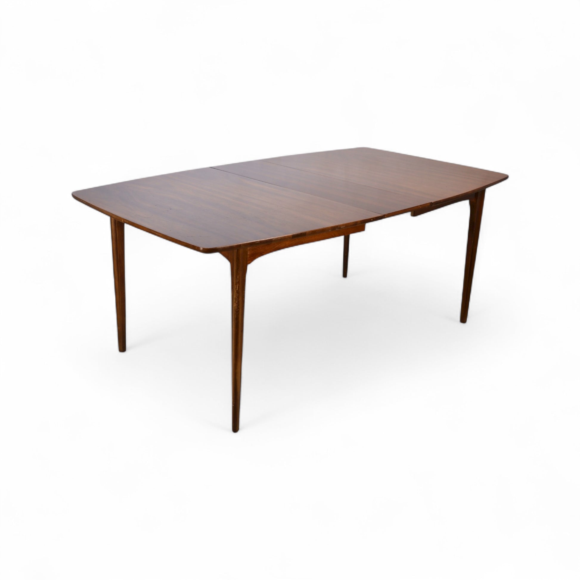 The table comes with a single extension leaf that expands its seating capacity, making it a versatile anchor for dining rooms that double as gathering spaces. Whether styled with modernist chairs or traditional pieces, this table brings depth and warmth to any interior thanks to its sculpted edge detailing and rich walnut tones. A standout example of American-made craftsmanship from one of the era’s most recognizable lines.