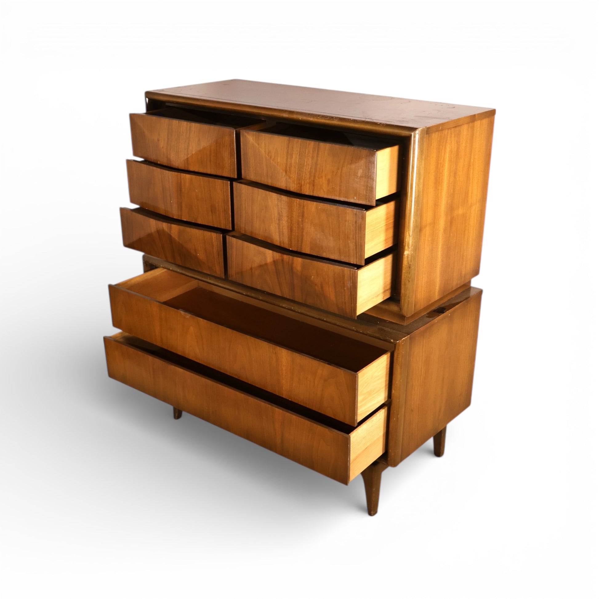United Furniture Diamond Front Vintage Mid Century Modern Highboy Dresser c. 1960s