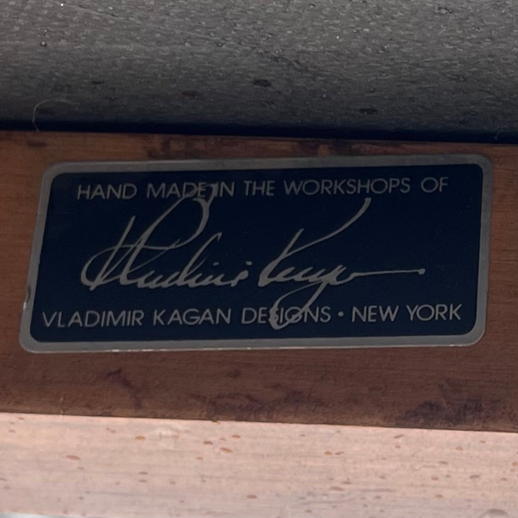 The inclusion of loose cushions and padded backs ensures a high level of comfort. The presence of Kagan’s autographed labels enhances the value of this collection, making it a prized acquisition for collectors, art enthusiasts, and interior decorators seeking to infuse a space with authentic Kagan charm.